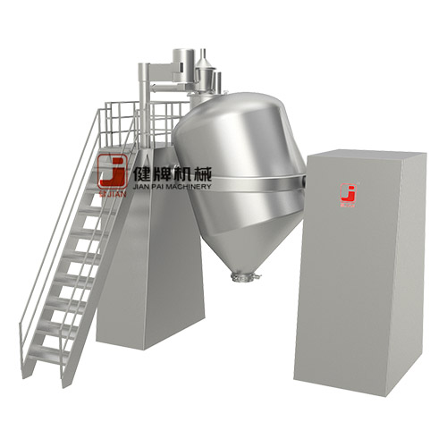 回轉(zhuǎn)體(混合斗)與回轉(zhuǎn)軸線成30°夾角,混合料斗中的物料隨回轉(zhuǎn)體 翻動外,同時沿斗壁做切線運動,產(chǎn)生強烈的翻轉(zhuǎn)與切線運動,從而達 到最佳的混合效果。